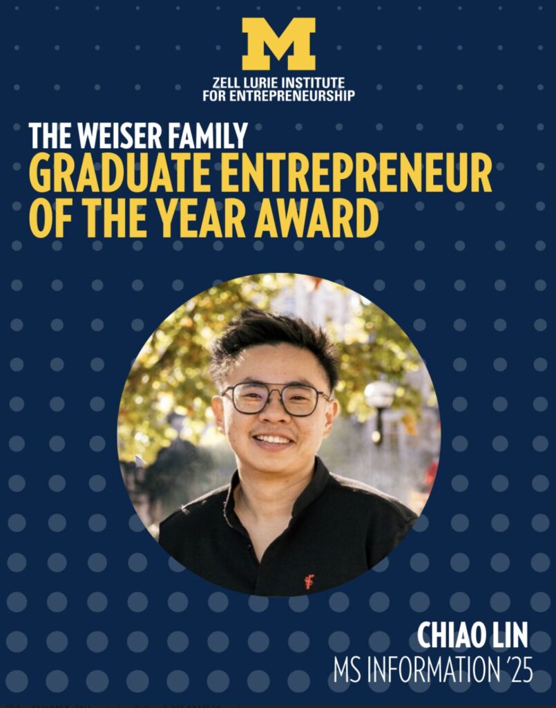 - UMSI Student Project Exposition, Entrepreneurship/Innovation Track, First Prize (2025)